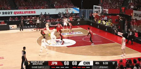 但我们上半场的防守有点惊弓之鸟的意思,大量的防守资源投入到外线,余嘉豪这样的大中锋都防出去,导致中距离和篮下的防守出现真空,日本男篮上半场在这个区域大量得分,尤其是渡边雄太。