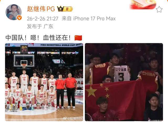 北京时间2026年2月27日消息。责任心,意志力,拼搏斗志和灵活头脑,这就是赵继伟。在俱乐部,因为自己的伤病,咽部受伤不能出战,眼看着兄弟们在场上比赛后,赵继伟特意购买礼物分给大家。——而在国家队,只要需要,只要被征召,他就会全力以赴。和日本队的比赛之后,赵继伟特意发文:中国队,血性还在!