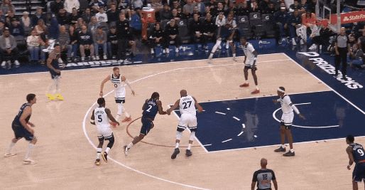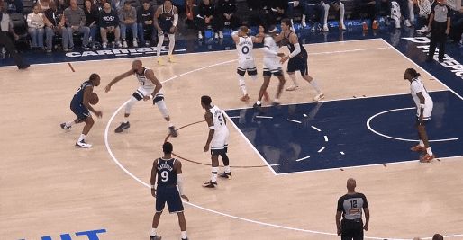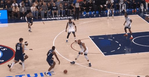今天开场,戈贝尔被拉到底角,莱纳德趁摆脱华兹,内切扣篮——细节:莱纳德趁华兹侧目,一个甩手推摆脱。