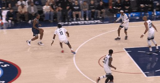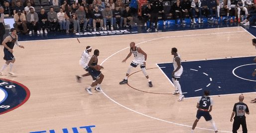 这可以解释之前的一球:莱纳德运球突进,一个急停,里德快速横移到莱纳德正前方,压低重心;莱纳德起手三分——里德为什么要迅速移到莱纳德前方还下重心?怕莱纳德就势变向直接突。