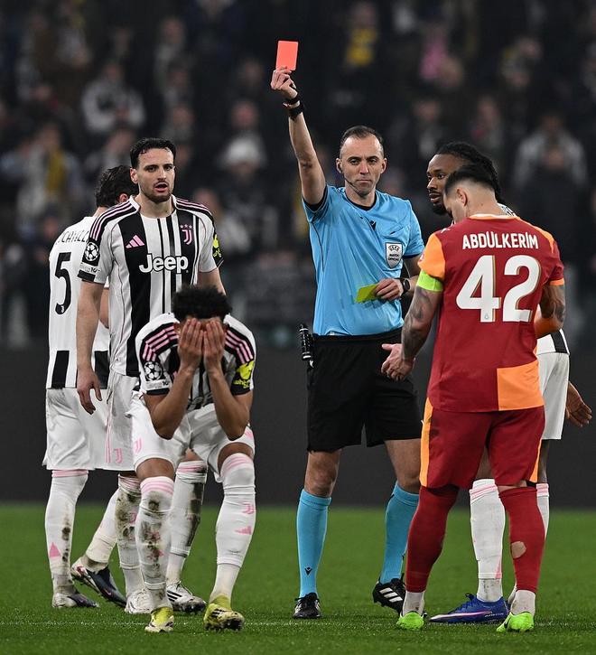 本场比赛转折点是第49分钟,尤文的凯利被判定为犯规踩踏伊尔马兹,主裁判向其出示第二张黄牌。VAR介入,主裁判观看大屏幕后改判,取消黄牌,直红将凯利罚下。
